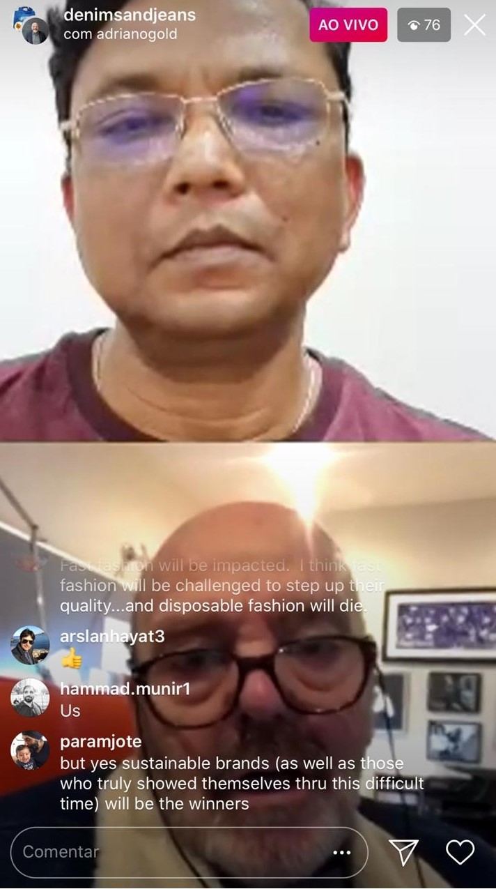 Incitado um conselho para a indústria da moda denim como um todo, Adriano teve tempo de mencionar o mais importante. “Desejo para todas as pessoas saúde e que tudo passe rapidamente, para que possamos estar aptos a nos ver novamente, para que possamos encontrar uma solução para que os negócios se deem de melhor forma, para todas as pessoas”, declarou.