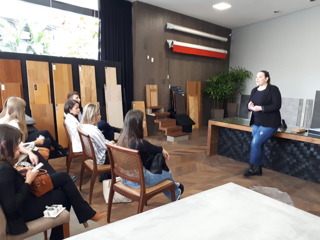 Em seguida, os nucleados seguiram para a Haiko Investimentos, onde conheceram toda a linha de produtos que a empresa trabalha. A Haiko é especializada na venda e na instalação de pisos, revestimentos em madeira, decks, toldos, coberturas, guarda-sóis e ombrelones para ambientes residências e comerciais.