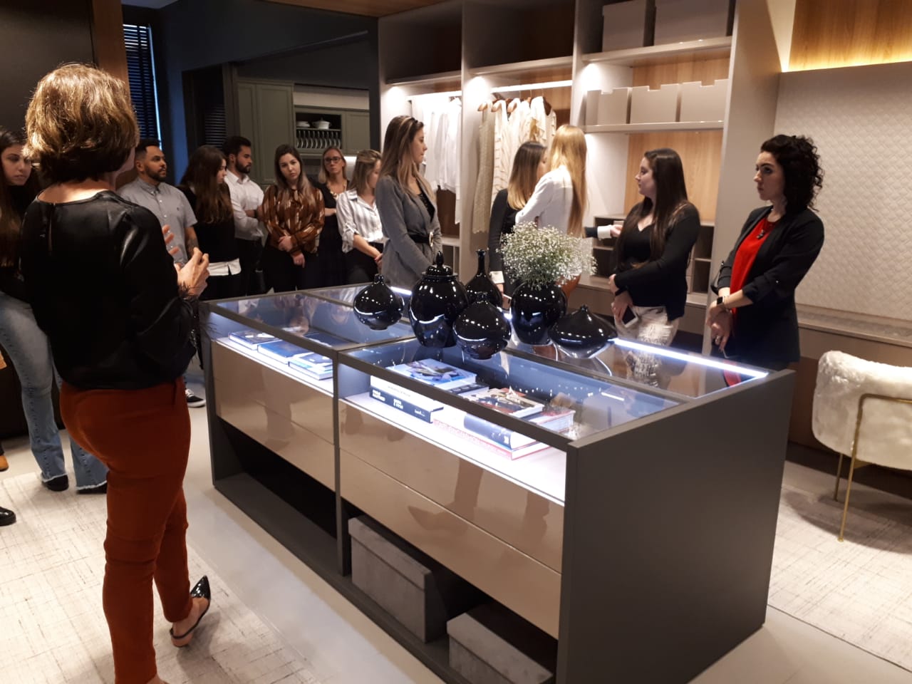O dia do grupo iniciou com uma visita na loja 4 Elementos, que atua no mercado desde 2005, representando itens do design nacional e internacional por meio de peças e objetos de decoração, da arquitetura e da arte contemporânea. O grupo pôde conhecer e aprender com as peças oferecidas pela empresa.