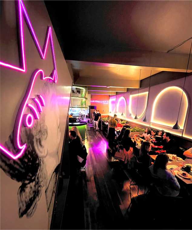 O espaço foi criado pra fazer com que as pessoas se permitam a desfrutar de coisas fora do comum. Você chega para jantar e é surpreendido por uma mesa de café da manhã. Você pode pedir um drink lendo as ofertas num jornal, e ainda escolher um carpaccio de salmão dentro de uma caixa de presentes. Parece surreal, né?