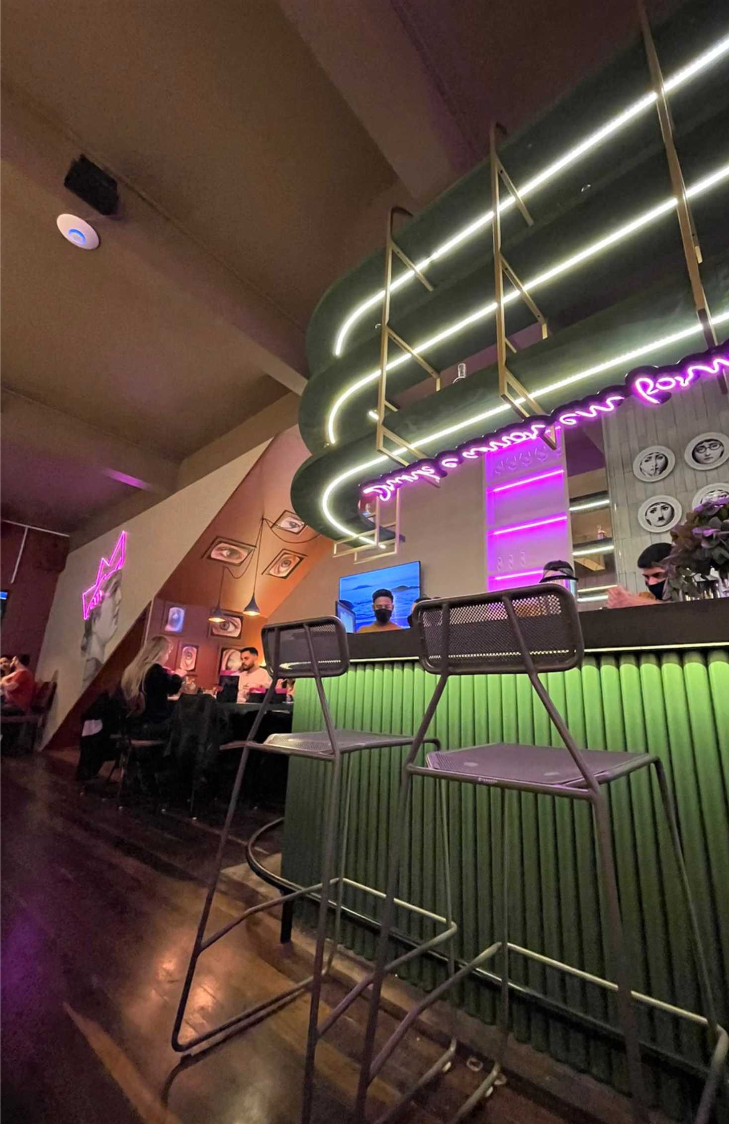 A arquiteta responsável pelo projeto foi a Bia Kestering, que brincou com cores e formas, enquanto a iluminação promove uma atmosfera mais intimista. Desde os olhares que te vigiam em quadros até as plantinhas que você encontrava no quintal da vovó, lá dentro você mistura lembranças mais nostálgicas com um pouco de drama e euforia.