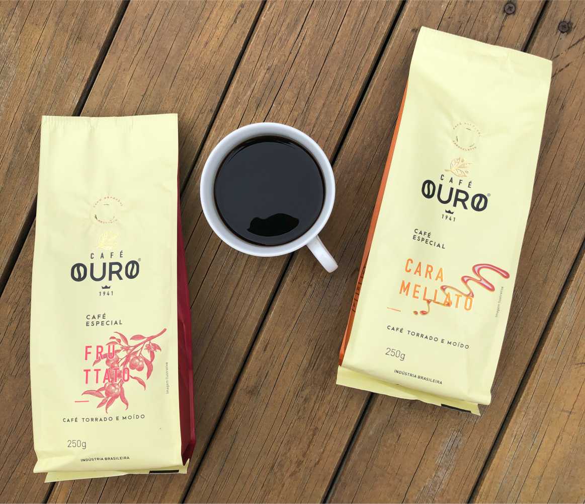 O Café Ouro Caramellato e Fruttato foram desenvolvidos com grãos de café especialmente selecionados da região da Alta Mogiana e, passaram por processos altamente controlados de colheita, secagem e beneficiamento. O Caramellato é um café harmônico, marcante e “licoroso”, apresenta corpo intenso, exalando aroma e sabor achocolatado e acidez suave. Já o Fruttato é uma bebida harmoniosa com corpo equilibrado, acidez cítrica e maravilhoso aroma de frutas vermelhas.
