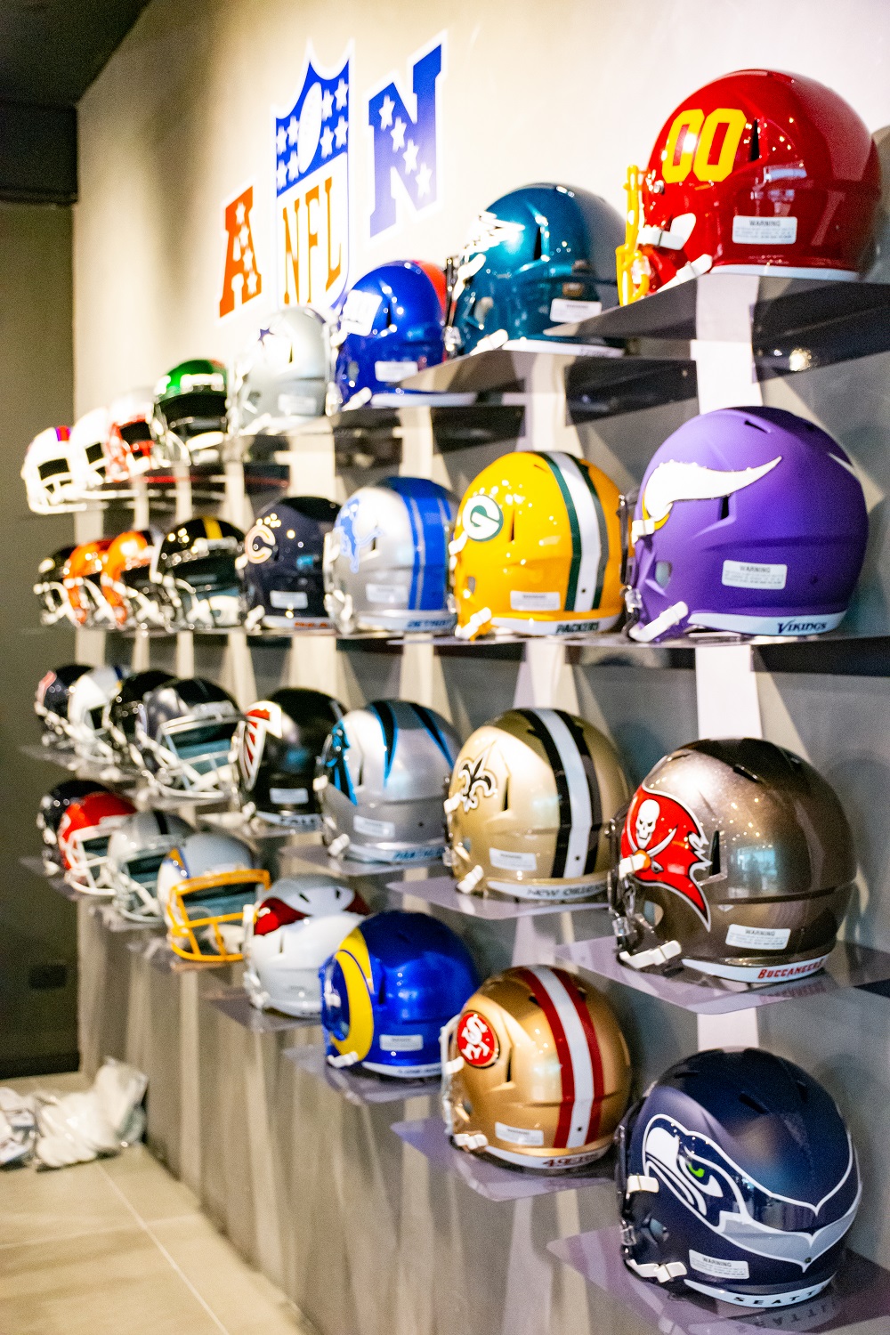 Quem entra na Sport America Palladium e vê a parede com 32 capacetes de futebol americano percebe rapidamente que está prestes a viver uma experiência única.