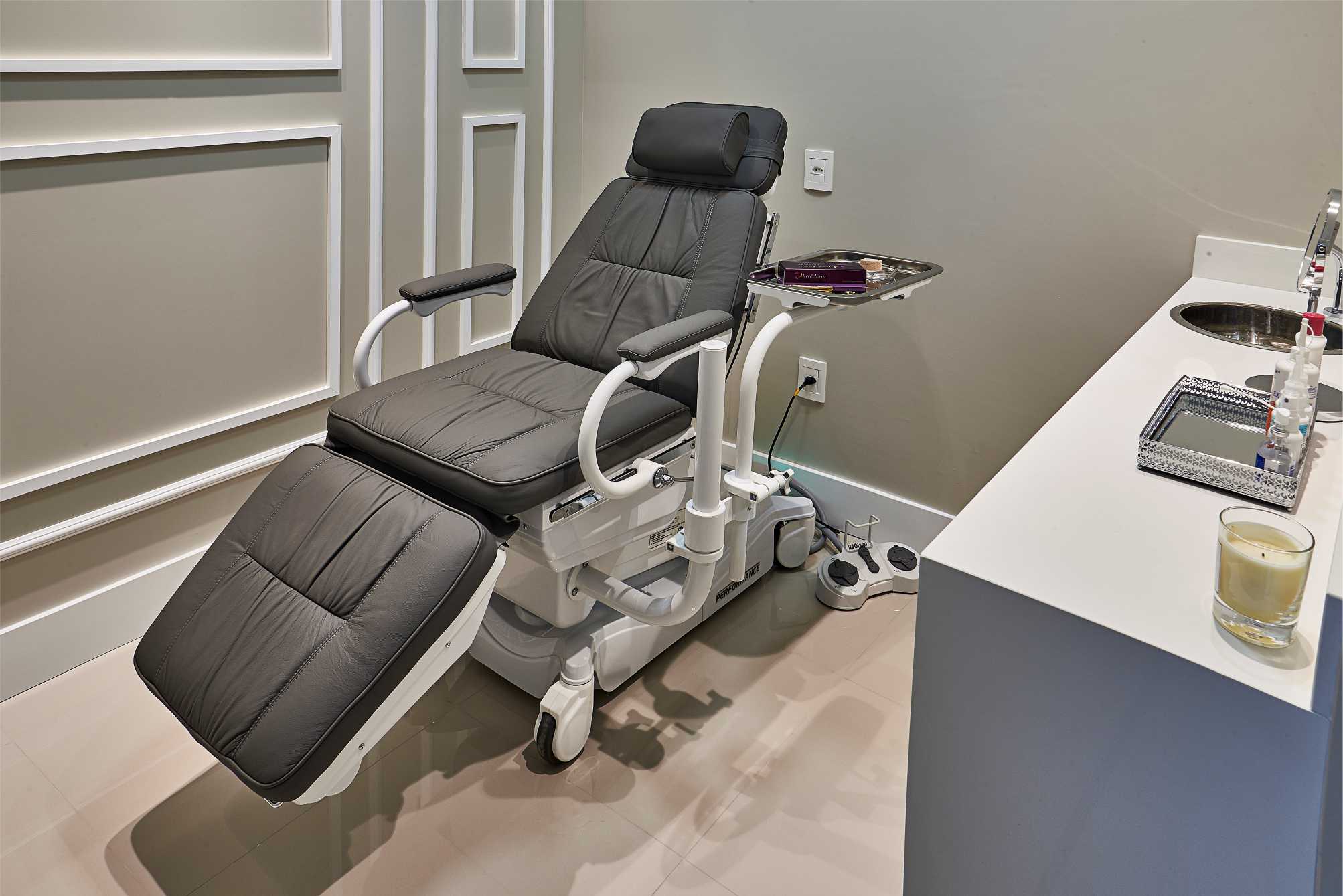 Os espaços da nova clínica, localizada no edifício Jardim Santo Anjo, foram pensados para comportar mais especialidades. São três salas, uma mais íntima para pequenos procedimentos, como Botox, Skinbooster, que será utilizada pelo cirurgião plástico e demais profissionais; outra sala foi criada para atendimento e consultório; e uma terceira sala para curativos.