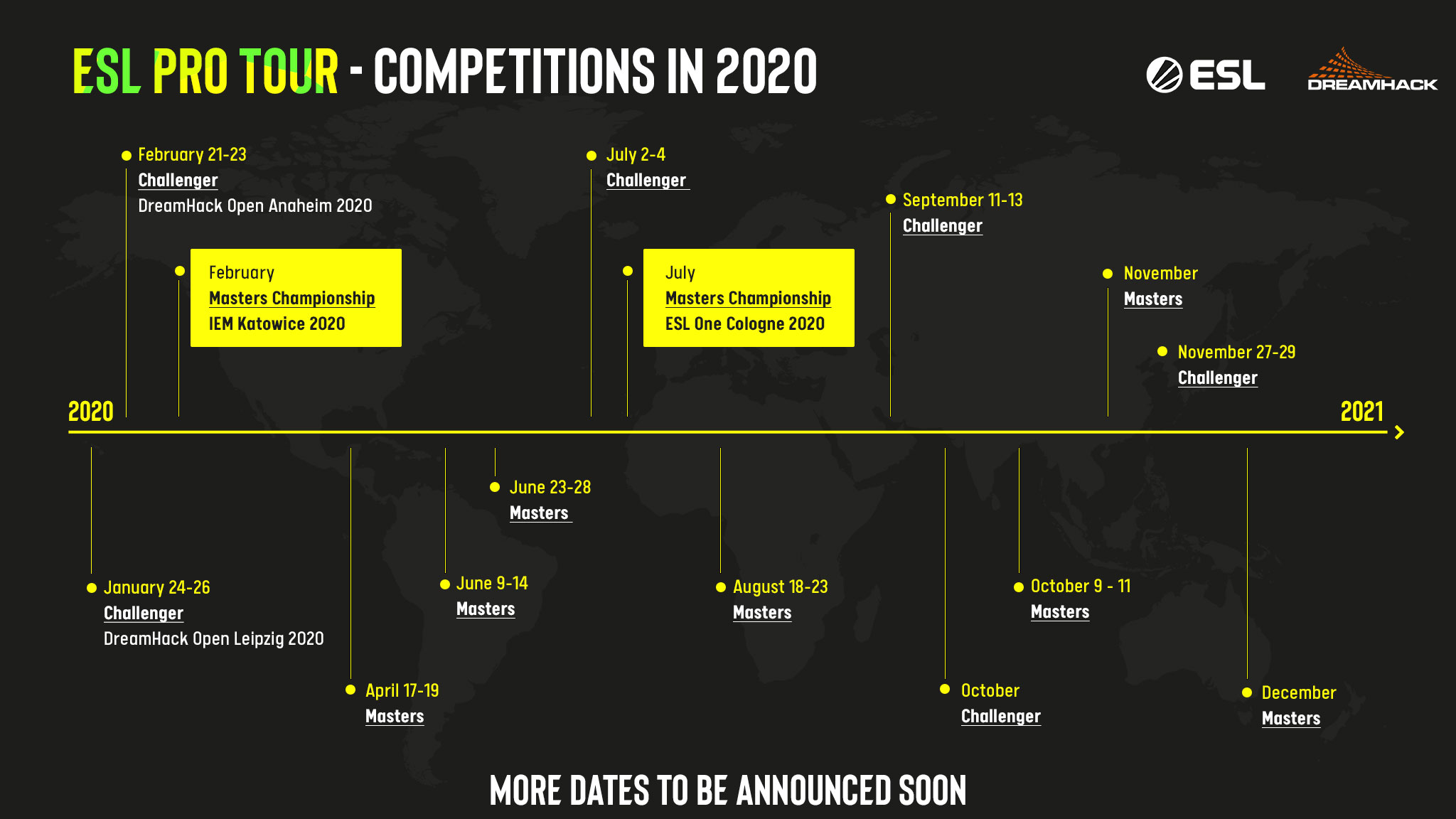 Os mais de 20 torneios da ESL e da DreamHack, que levam a duas finais do Masters por ano, serão realizados no maior circuito de competição CS:GO do mundo