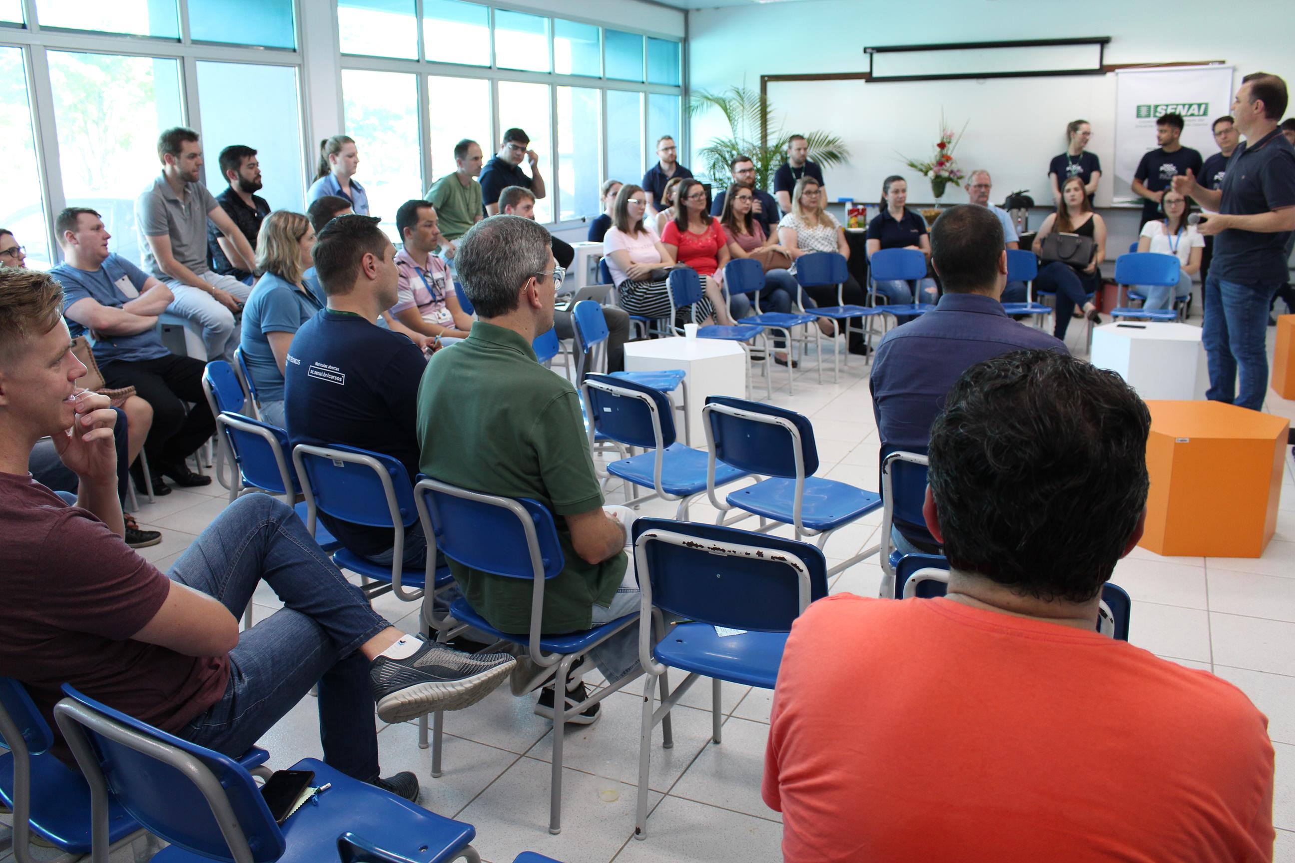 Na sexta-feira, foi realizada a gincana dos alunos da Aprendizagem Industrial e o 4º FIESC Talks Innovation, evento do projeto Eixo de Desenvolvimento da Indústria para Inovação (EDI). O talks trouxe os temas: Transformação Digital, abordada pelo professor William Juliano, CEO da Kick Off Consultores Associados; Soluções para Inovação e Competitividade, com Geferson Luiz dos Santos, gerente executivo dos Institutos SENAI de Tecnologia; Microcrédito para novas empresas, com Felipe Dallagnolo, Head of Growth da BOM Microcrédito. Também foram apresentados os primeiros resultados do EDI.
