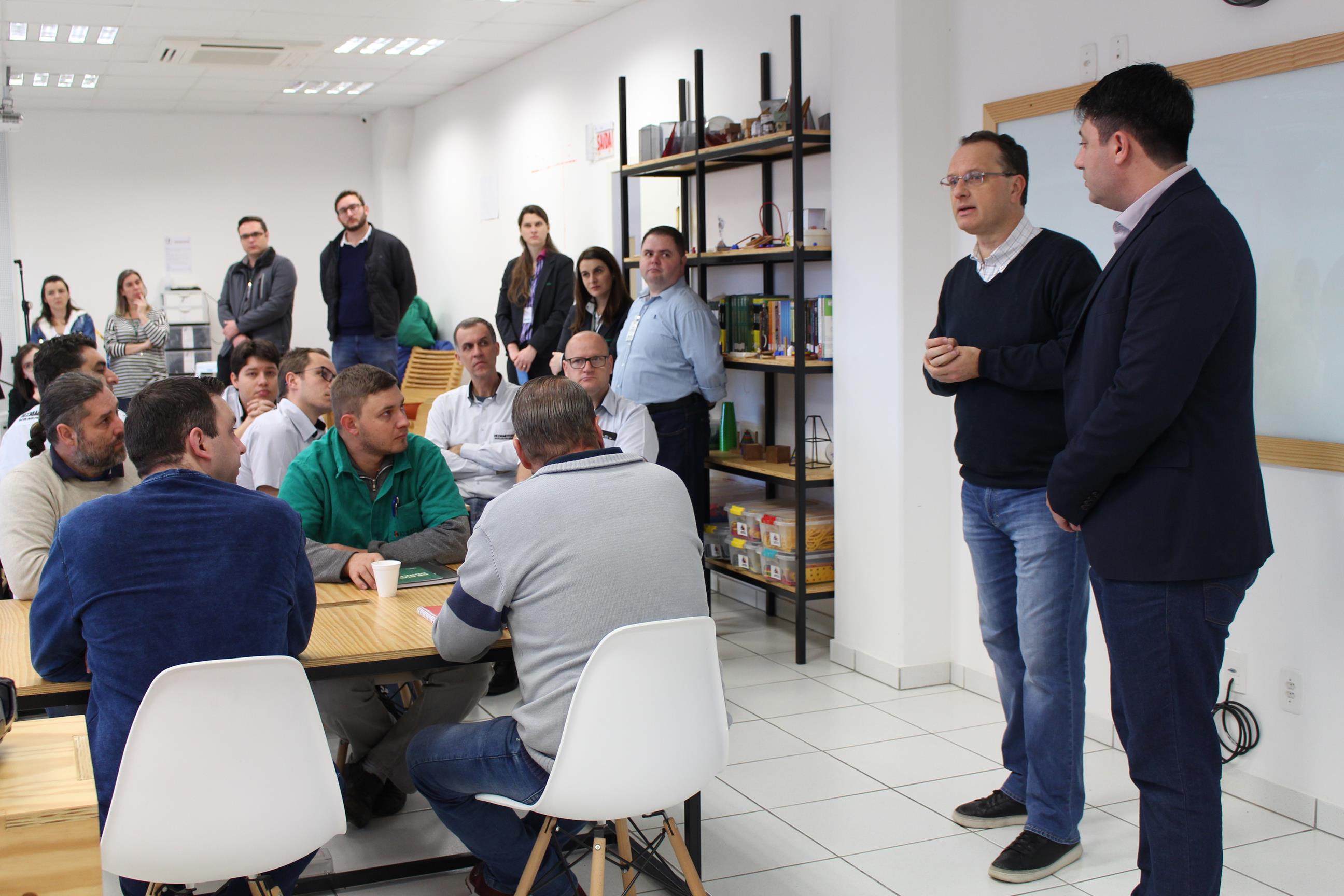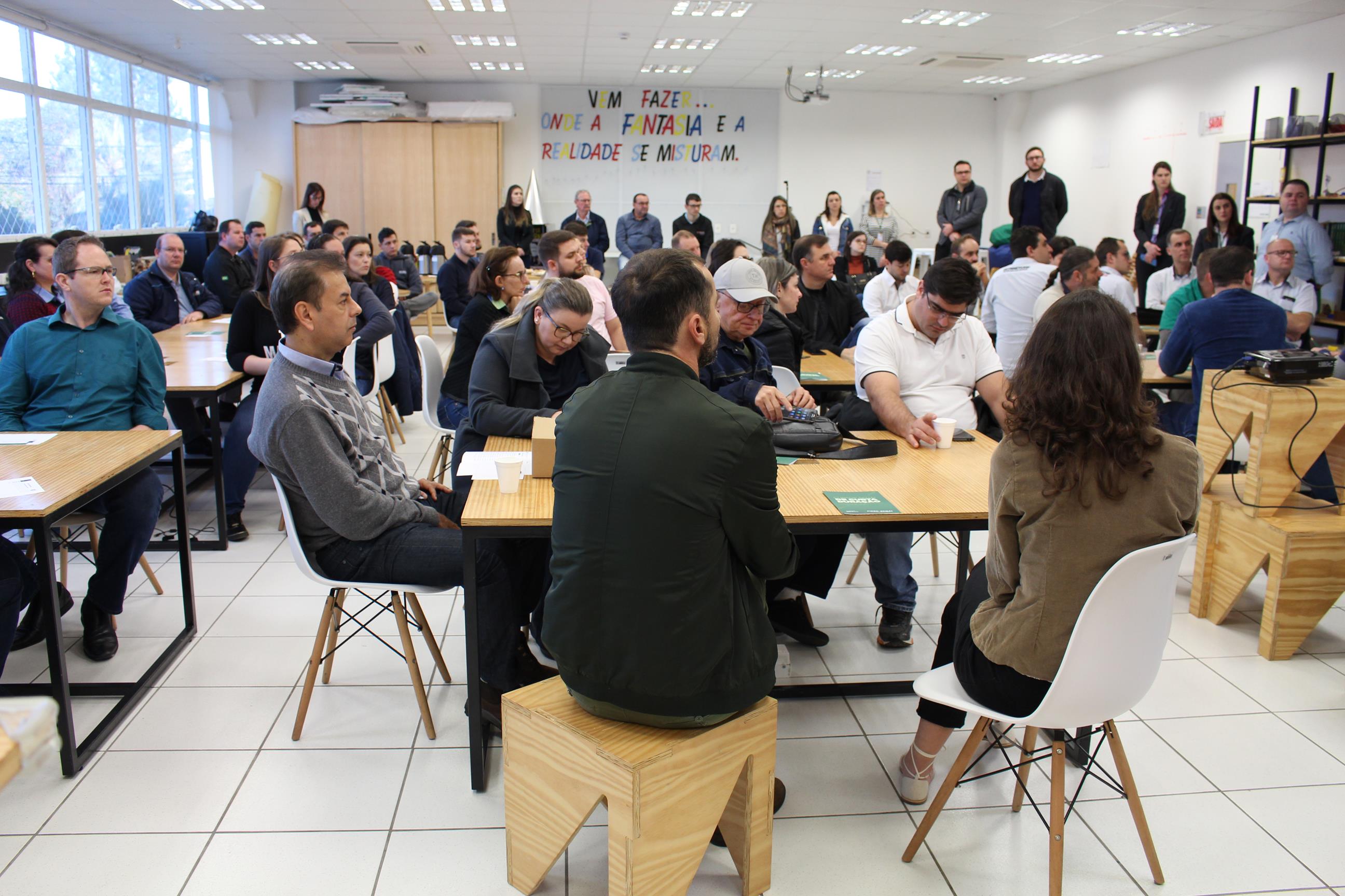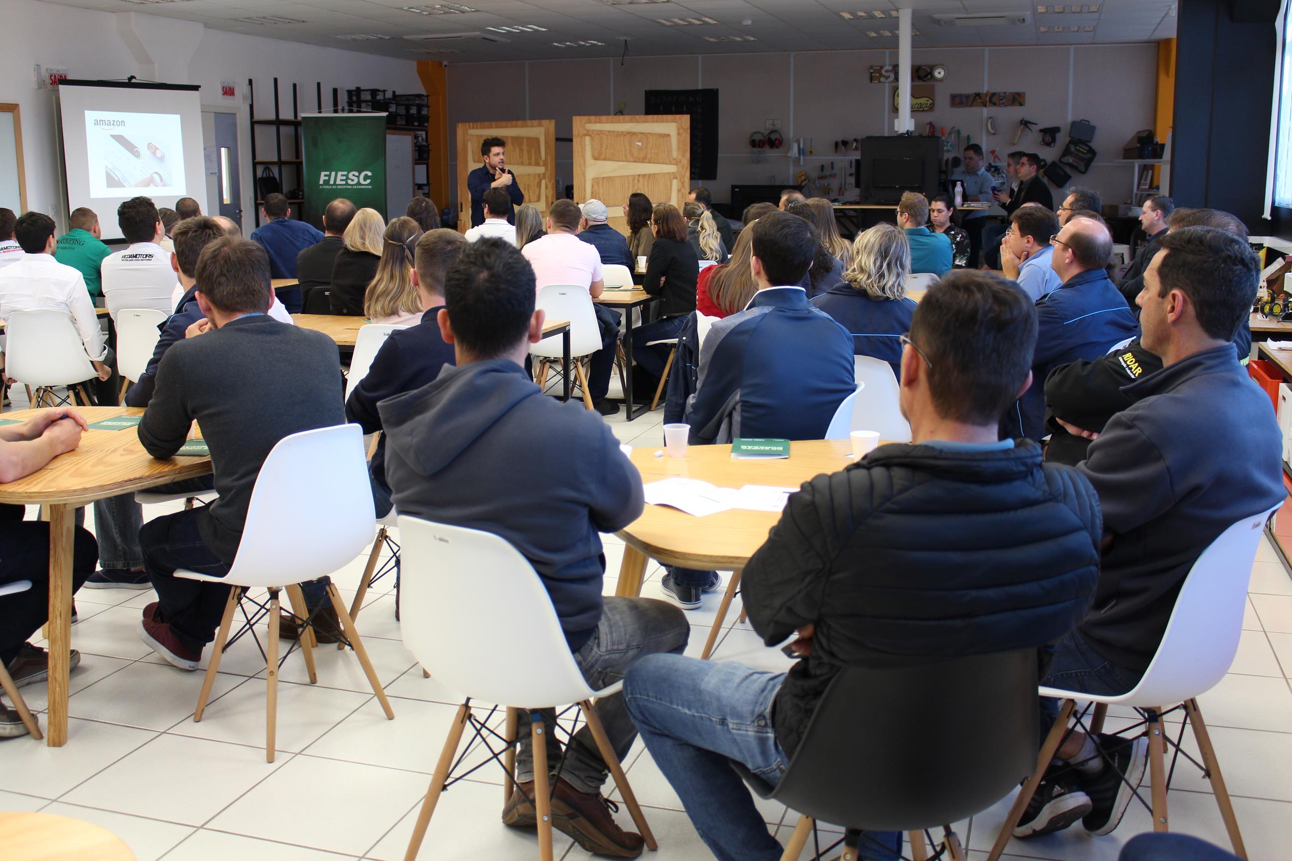 O Espaço Maker do SESI Rio do Sul, entidade da FIESC, recebeu mais de 60 pessoas, de empresas de diferentes setores, para um bate-papo sobre inovação na indústria. “Estamos iniciando esse movimento como uma demanda da vice-presidência da FIESC Alto Vale, para motivar as empresas e facilitar o acesso ao Ecossistema de Inovação de Santa Catarina”, explicou Rafael Boaventura, interlocutor de Inovação do Instituto Euvaldo Lodi (IEL) para o Alto Vale.