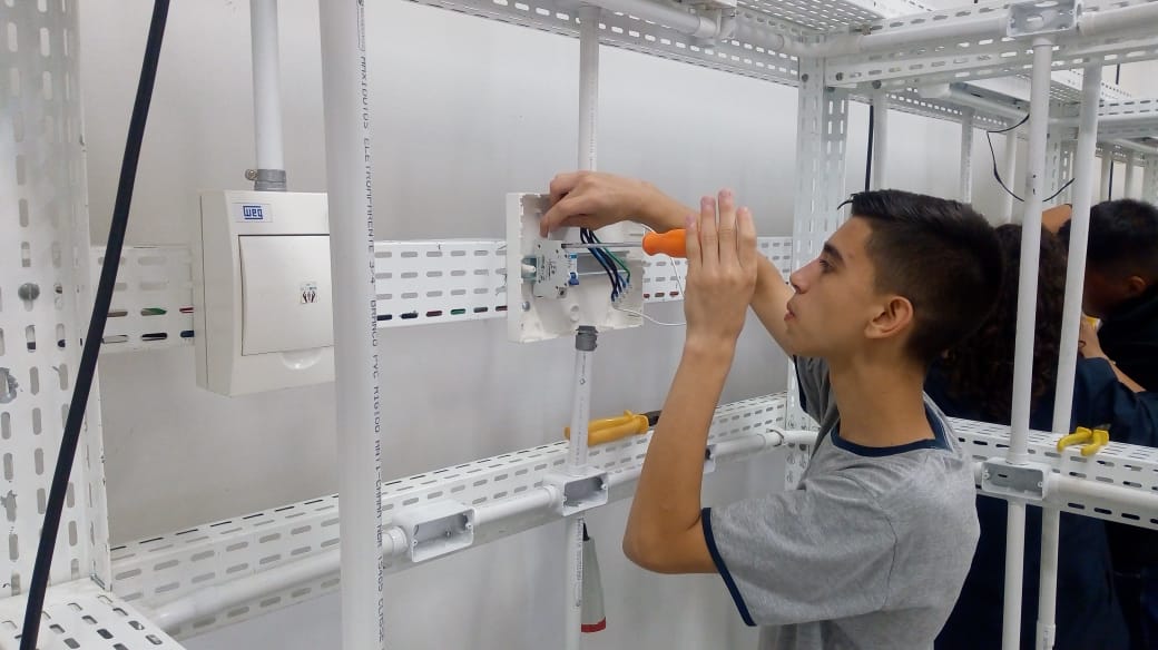 Durante as aulas os alunos recebem toda a teoria e também realizam atividades práticas para exercitarem o que aprenderam. Os encontros acontecem nas unidades do SESI/SENAI ou em escolas do município.