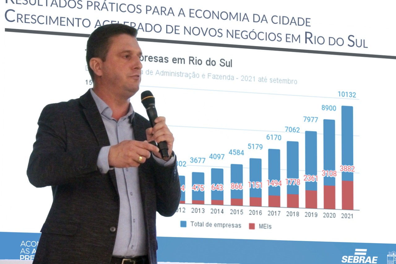 Estes e outros dados foram apresentados na noite de quarta-feira (15), em evento de lançamento do Programa Cidade Empreendedora 3, ao qual Rio do Sul adotou de maneira pioneira no Estado, em parceria com o Sebrae/SC. Presente no encontro, o diretor técnico da entidade, Luciano Pinheiro, disse que Rio do Sul dá exemplo em realizar atividades que incentivem, diversifiquem e apoiam o empresariado.